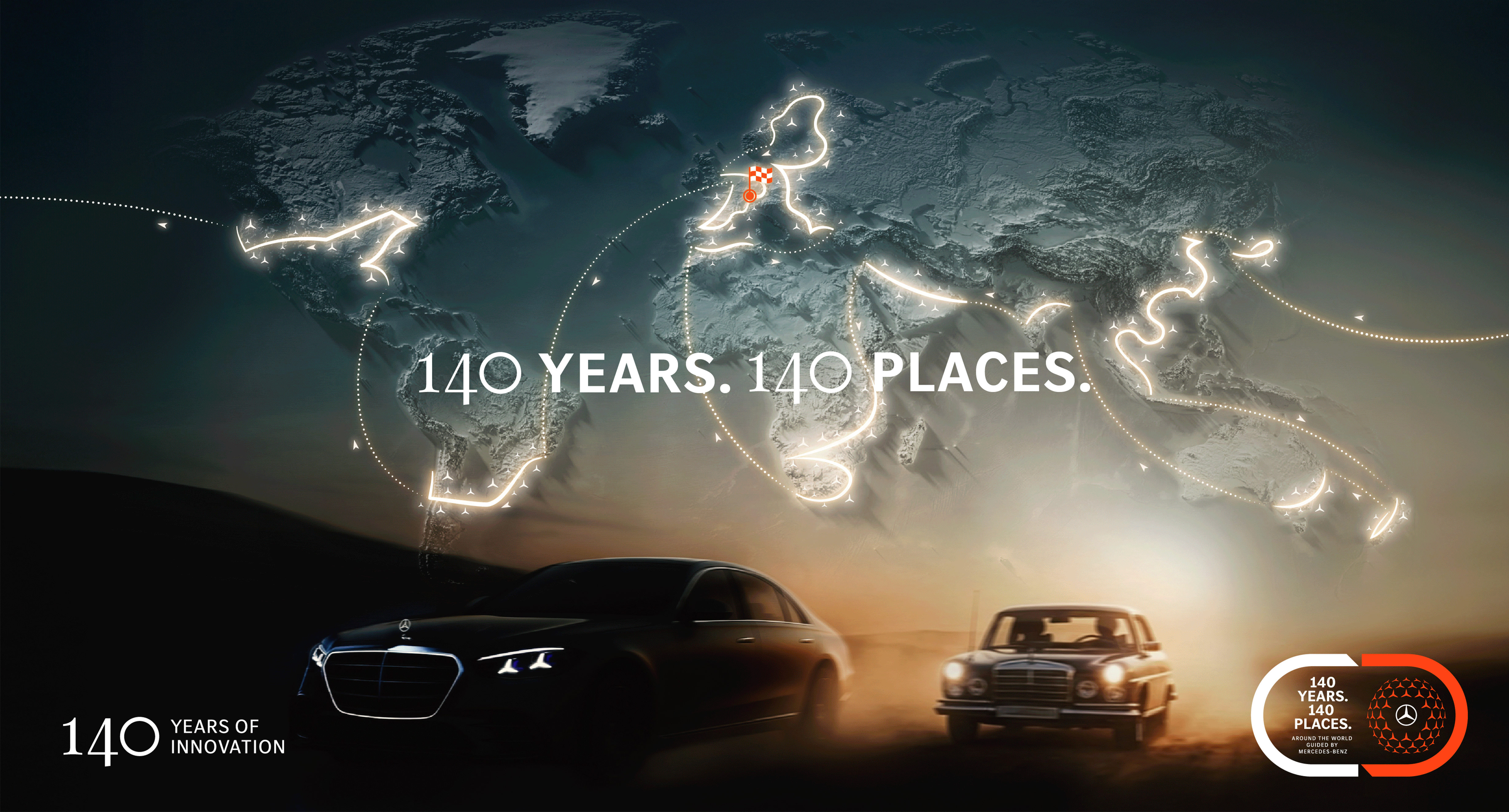 Ciento cuarenta años después, seguimos liderando la innovación en el sector y celebramos este legado con un road trip muy especial. Tres unidades del Clase S recorren 50.000 kilómetros y visitan 140 destinos en seis continentes, en un viaje que simboliza nuestra capacidad para honrar el pasado mientras impulsamos el futuro. En Mercedes-Benz, tradición e innovación no son conceptos opuestos, sino fuerzas complementarias que avanzan juntas y nos consolidan como referente en la movilidad, siempre junto a clientes como tú. Gracias.