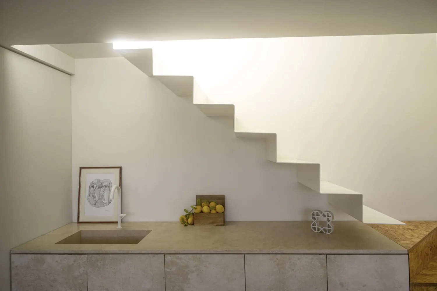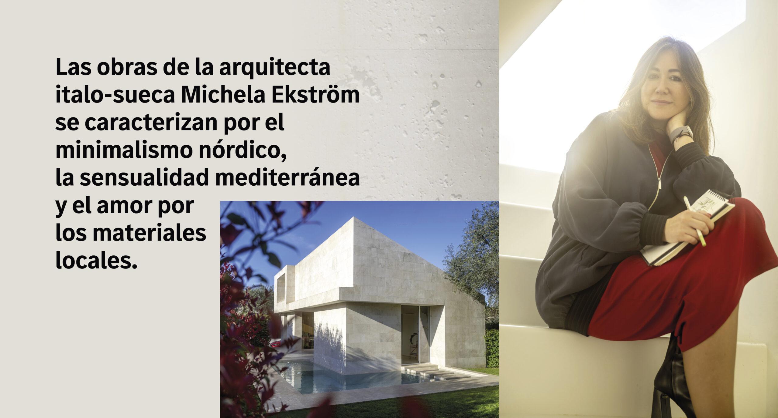 Su residencia, de apenas 60 m², nos sorprende por su diseño abierto y funcional. Cada rincón posee múltiples usos y la luz fluye de forma natural. Aquí se ven sus raíces italo-suecas mediante la funcionalidad escandinava y la calidez mediterránea. La totalidad del proyecto se realizó con artesanos locales, como la cantera Poggi Bros en Tívoli. “La arquitectura debe fomentar vínculos: con las personas, los materiales y el entorno”, dice Michela.
