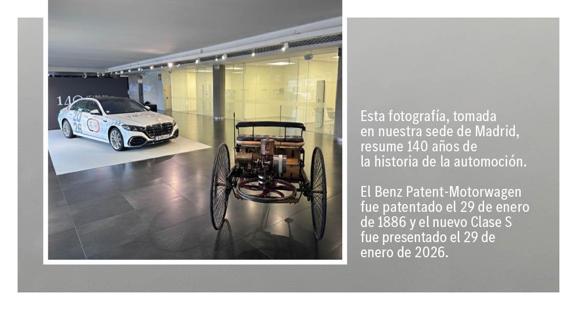2026 es un año especialmente significativo para nosotros. Se cumplen 140 años desde que Carl Benz registró, el 29 de enero de 1886, la patente del primer Benz Patent‑Motorwagen. Para conmemorar este hito, tres unidades de la nueva generación del Clase S —presentada mundialmente en el Museo Mercedes-Benz de Stuttgart el pasado 29 de enero— emprenden un viaje de 50.000 kilómetros que las llevará a recorrer 140 lugares emblemáticos repartidos por todo el mundo, antes de regresar a Stuttgart el próximo mes de octubre.