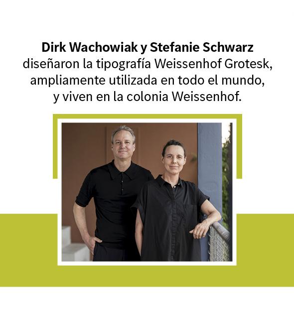 Aparcamos nuestro Clase G frente a la casa diseñada por Mies van der Rohe, sede del Taller Weissenhof. Aquí es donde vecinos y simpatizantes del movimiento Bauhaus organizan exposiciones de los jóvenes artistas para preservar el legado de la colonia. Conocemos a dos de ellos. Stefanie Schwarz imparte clases en la Academia Estatal de Bellas Artes. Su pareja, Dirk Wachowiak, enseña tipografía y diseño corporativo en la Universidad Trier de Ciencias Aplicadas. Ambos fundaron open2type, un laboratorio y plataforma para el diseño de tipografías. La casa de Peter Behrens ha sido su hogar durante estos diez años.