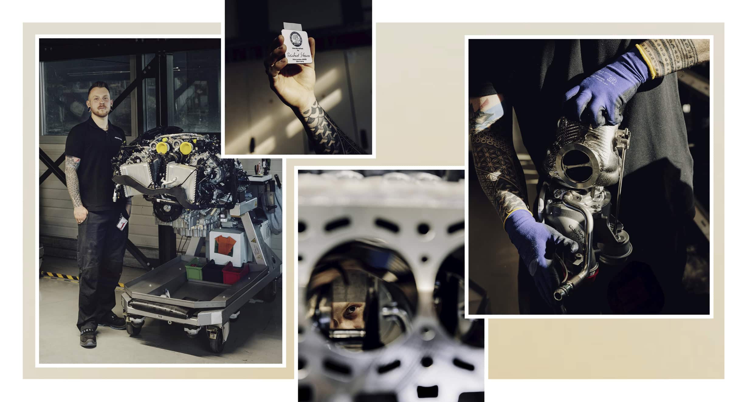 Reinhard Strauss (bajo estas líneas) es uno de esos distinguidos mecánicos. El joven ha regresado recientemente a Affalterbach tras trabajar en AMG en Daventry, Inglaterra. Allí, participó en uno de los proyectos más ambiciosos en la historia de Mercedes-Benz: el Mercedes-AMG One, el primer vehículo que llevó la tecnología de la Fórmula 1 a la calle. “Cuando fabrico un motor, tiene que ser perfecto. Al fin y al cabo, mi nombre estará grabado en él”, afirma Strauss. “Hay que amar estos coches. Si no, se darán cuenta”, concluye con una sonrisa.